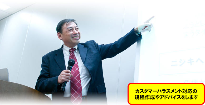| 顧客満足で、難クレームで、コンプライアンスやハラスメントで、または、業務での様々な壁にお悩みの方は、ご一報ください。 建前論ではない、実践的な解決策をカウンセリングします。 |